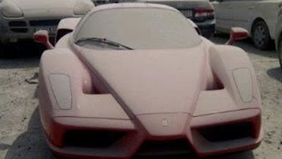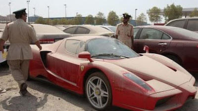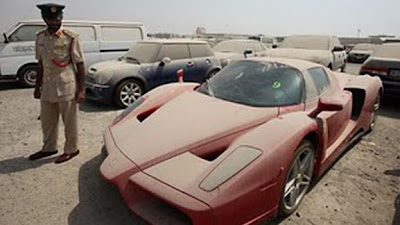 Podemos imaginar que o prezado leitor se sentirá angustiado por ver estas imagens. É como o naufrágio de um barco de grande porte. Na foto, uma Ferrari Enzo abandonada, deixada a mercê em pleno calor sufocante de Dubai.